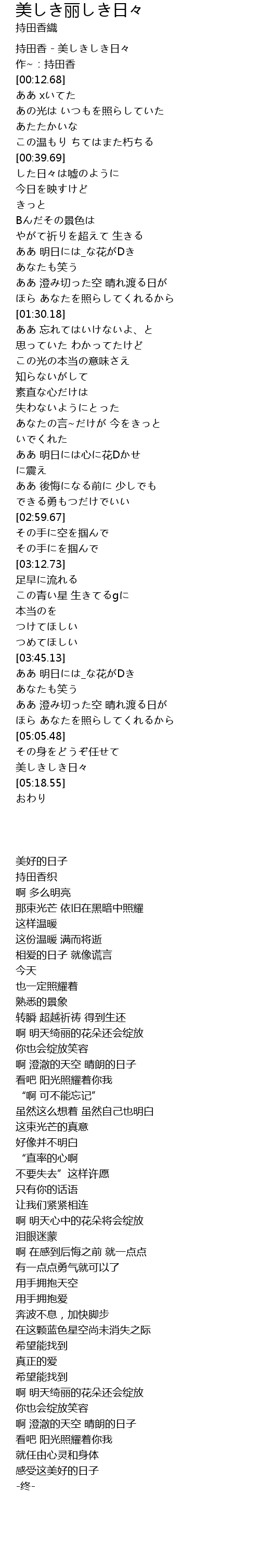 | [00:00.48] | 持田香 - 美しきしき日々 |