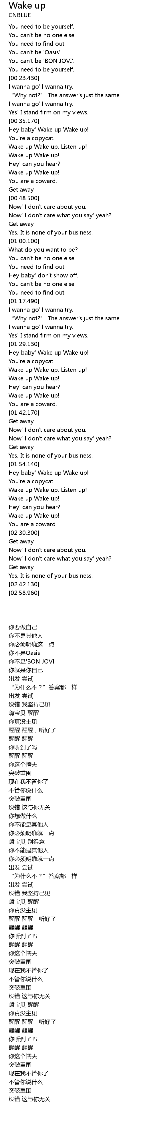 | [01:33.800] | Wake up Wake up. Listen up! |