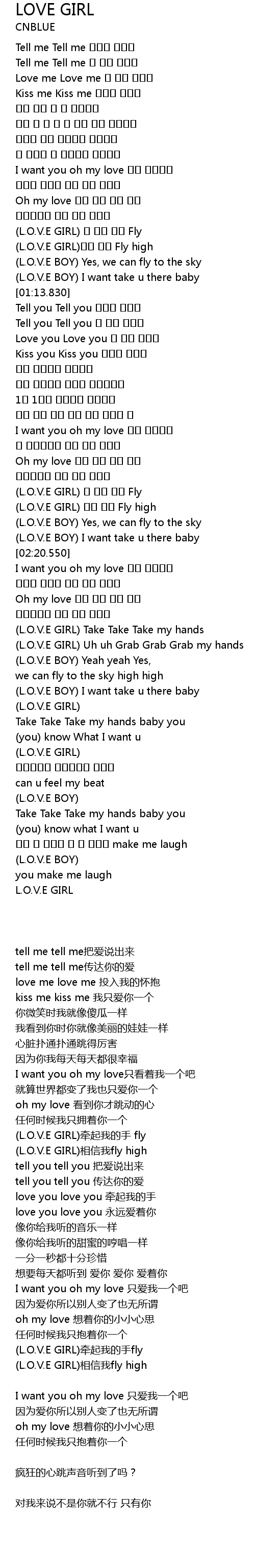 | [02:50.290] | L. O. V. E GIRL Uh uh Grab Grab Grab my hands |