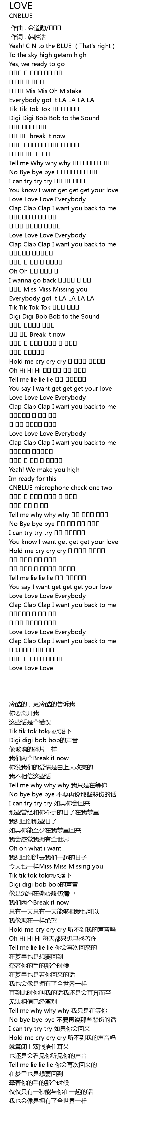 | [03:15.580] | Tell me lie lie lie 다시 돌아온다고 |
