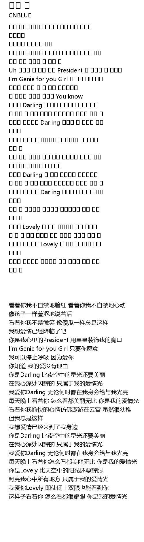 그대를 사랑해요 Darling 언제나 내 곁에서 빛을 내줘요 |