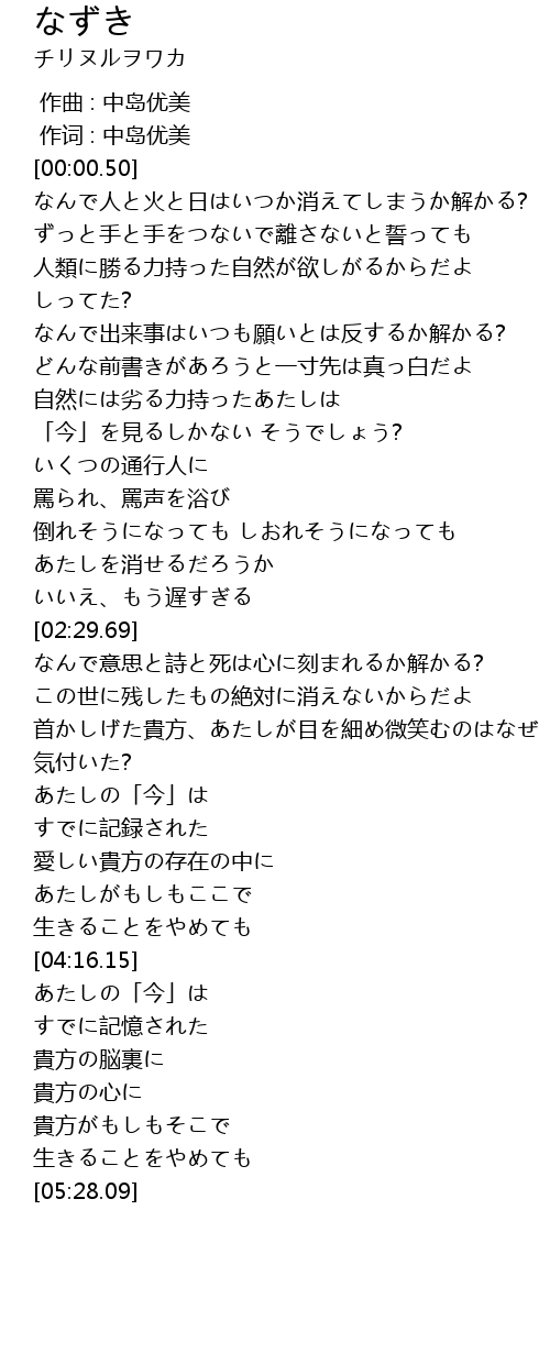 | [00:00.16] | 作词 : 中岛优美 |