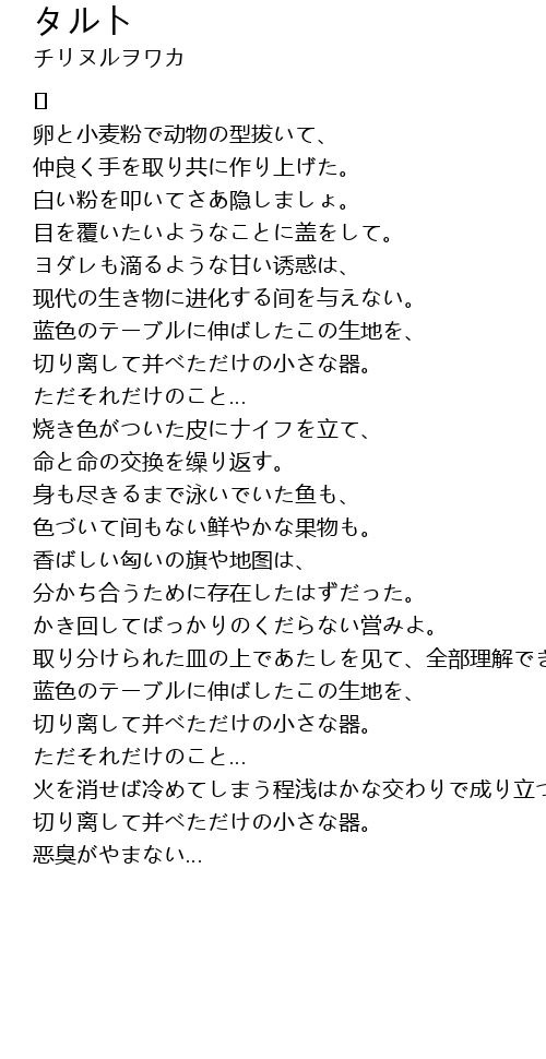| 火を消せば冷めてしまう程浅はかな交わりで成り立つ空虚な生地を、 | |