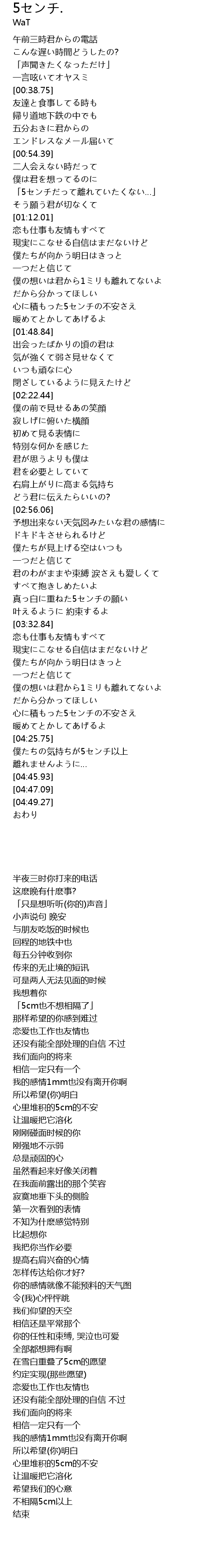 | [03:22.28] | 真っ白に重ねた5センチの願い |
