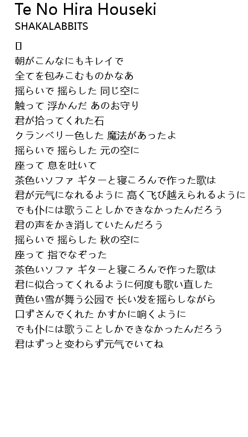 | Song | Te No Hira Houseki |
