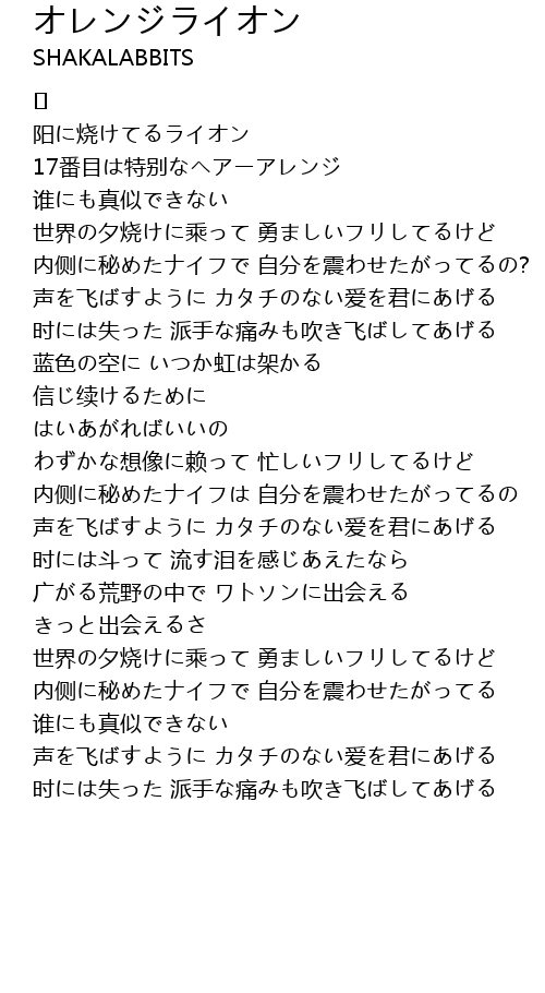 | Song | オレンジライオン |