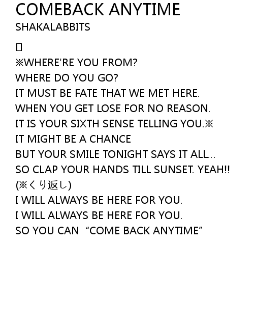 | Song | COMEBACK ANYTIME |