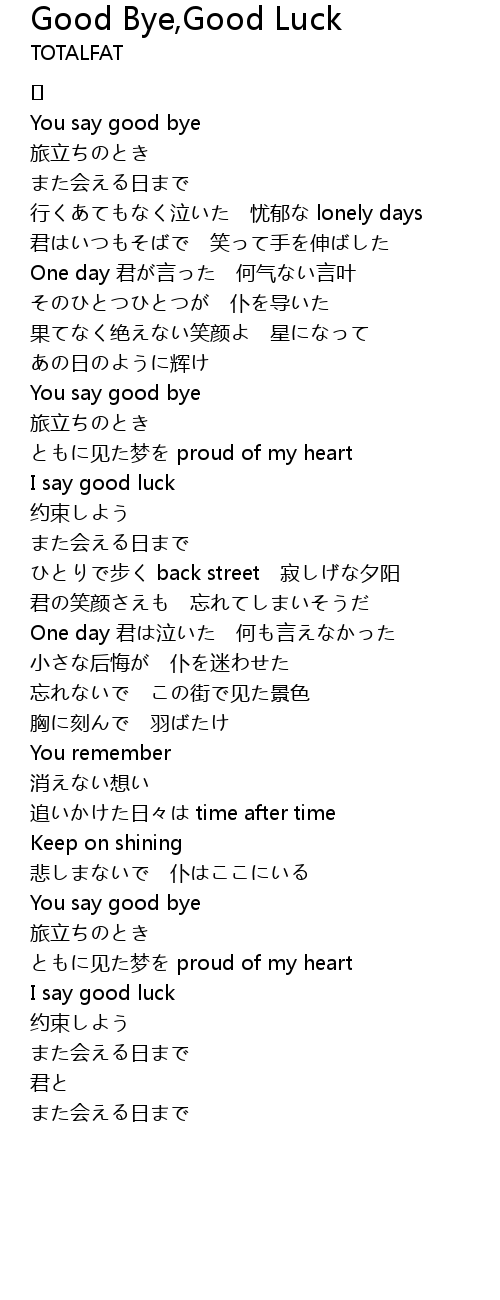 | Song | Good Bye,Good Luck |