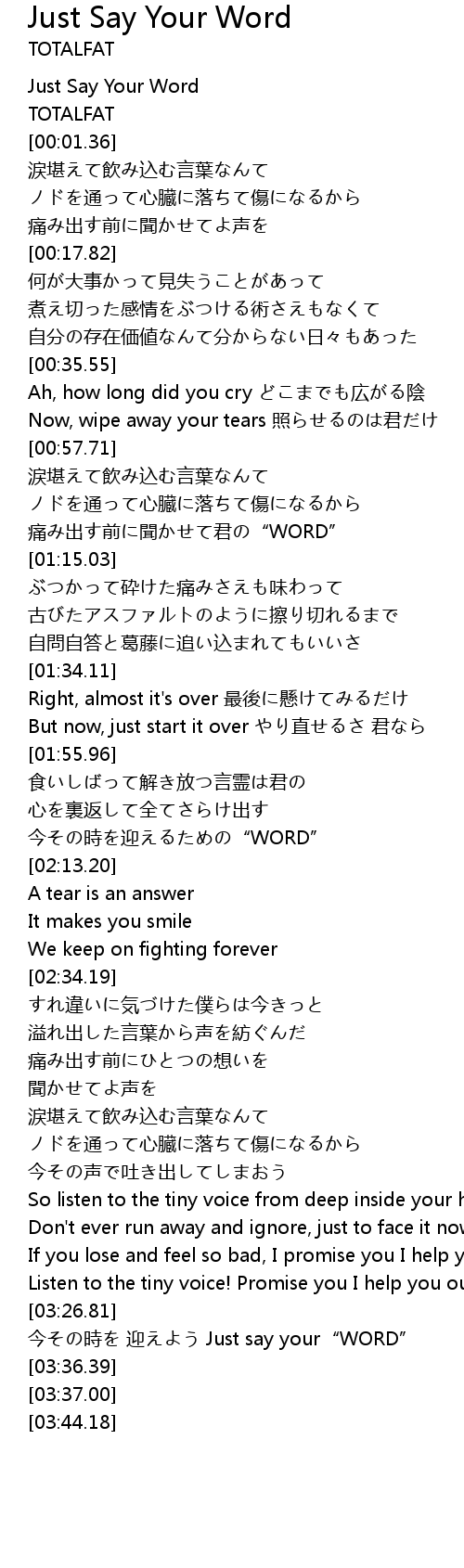 | [03:28.83] | 今その時を 迎えよう Just say your“WORD” |