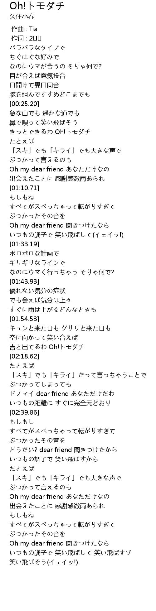 | [02:11.82] | 吉と出てるわ Oh!トモダチ |