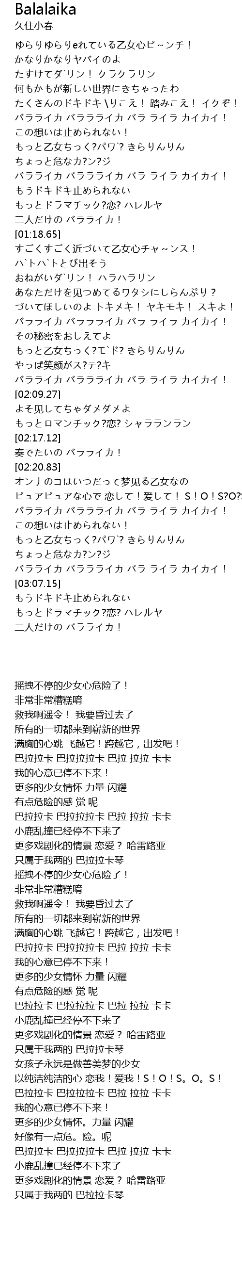 | [01:52.64] | バラライカ バララライカ バラ ライラ カイカイ! |