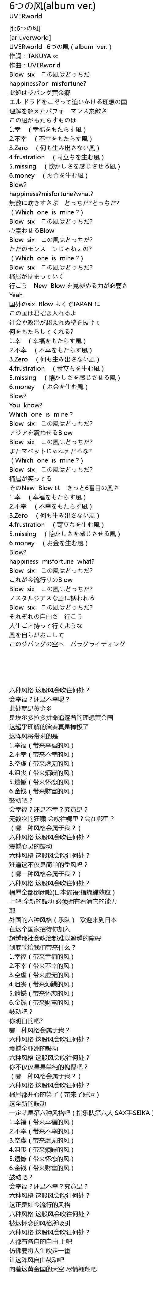 | [00:00.96] | UVERworld -6つの風(album ver.) |