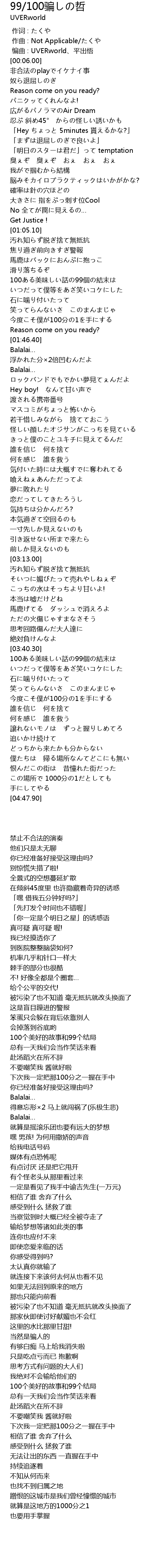 | [00:02.000] | biān qǔ : UVERworld píng chū wù |