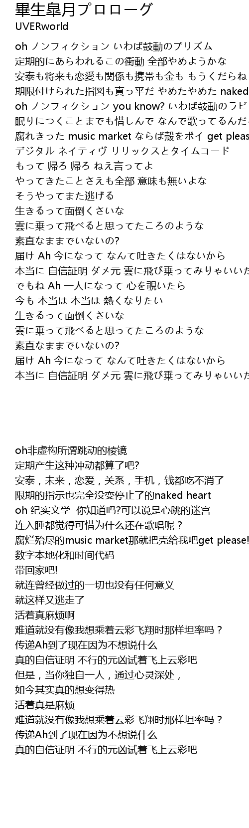 | 眠りにつくことまでも惜しんで なんで歌ってるんだろう? | |