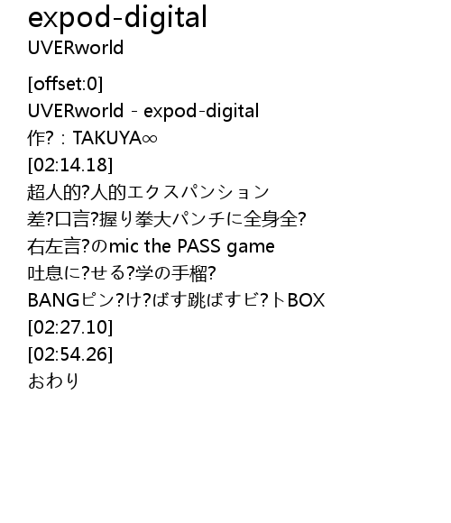 | [02:23.47] | BANGピン?け?ばす跳ばすビ?トBOX |