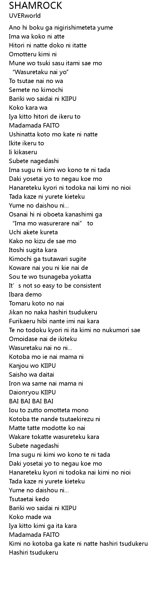 | Kimi no kotoba ga kate ni natte hashiri tsudukeru | |