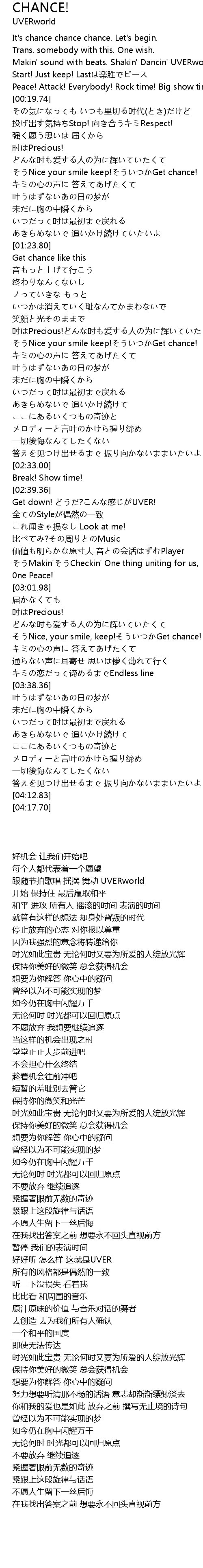 | [00:04.40] | It's chance chance chance. Let's begin. |
