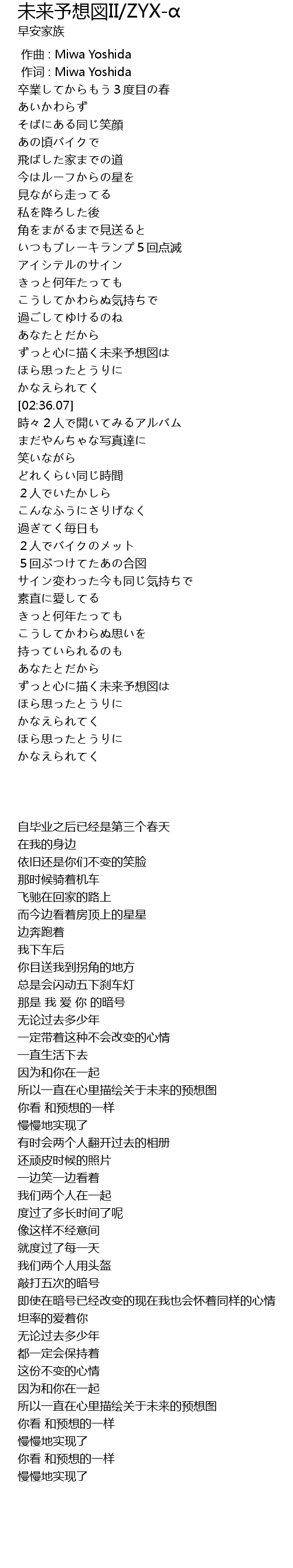 | [00:01.00] | zuo ci : Miwa Yoshida |