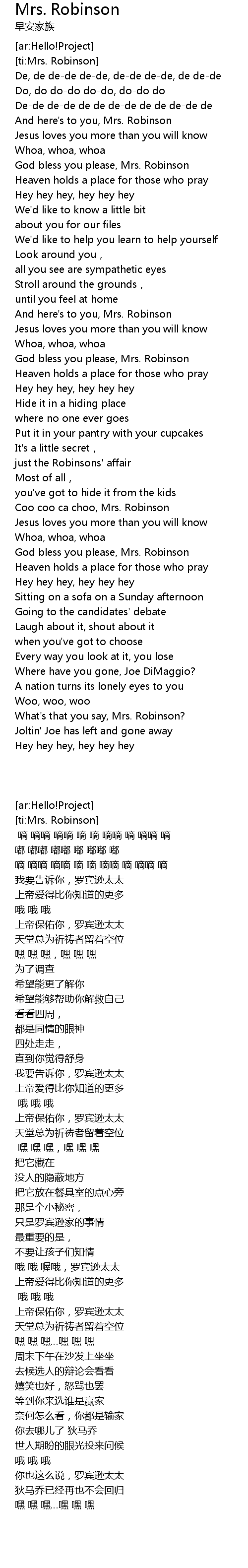 | [02:12.21] | Coo coo ca choo, Mrs. Robinson |