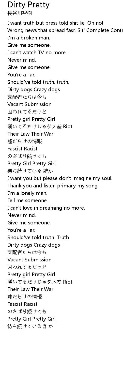 | [00:22.20] | I want truth but press told shit lie. Oh no! |