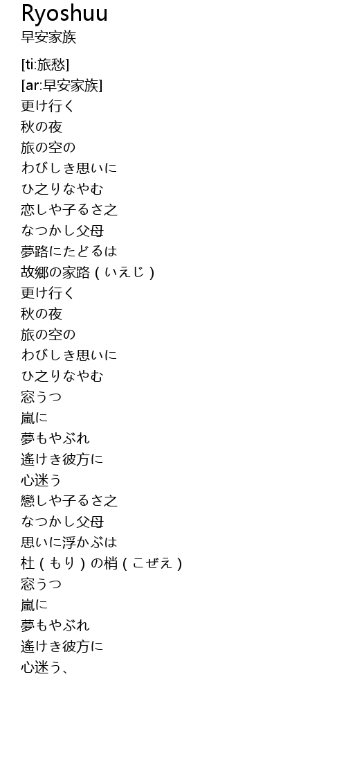 | [02:27.35] | 杜(もり)の梢(こぜえ) |