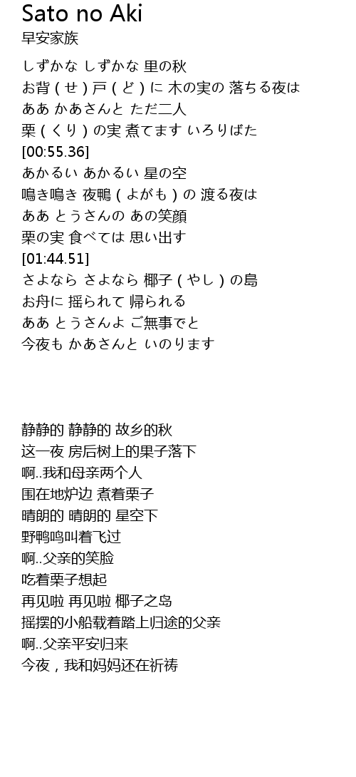 | [00:44.26] | 栗(くり)の実 煮てます いろりばた |
