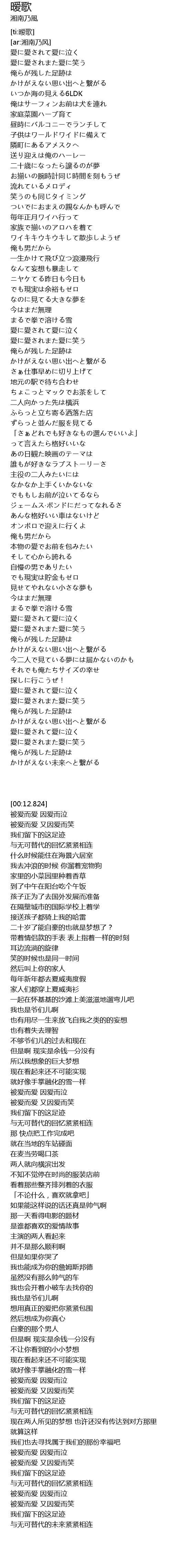| [04:12.543] | 愛に愛されまた愛に笑う |