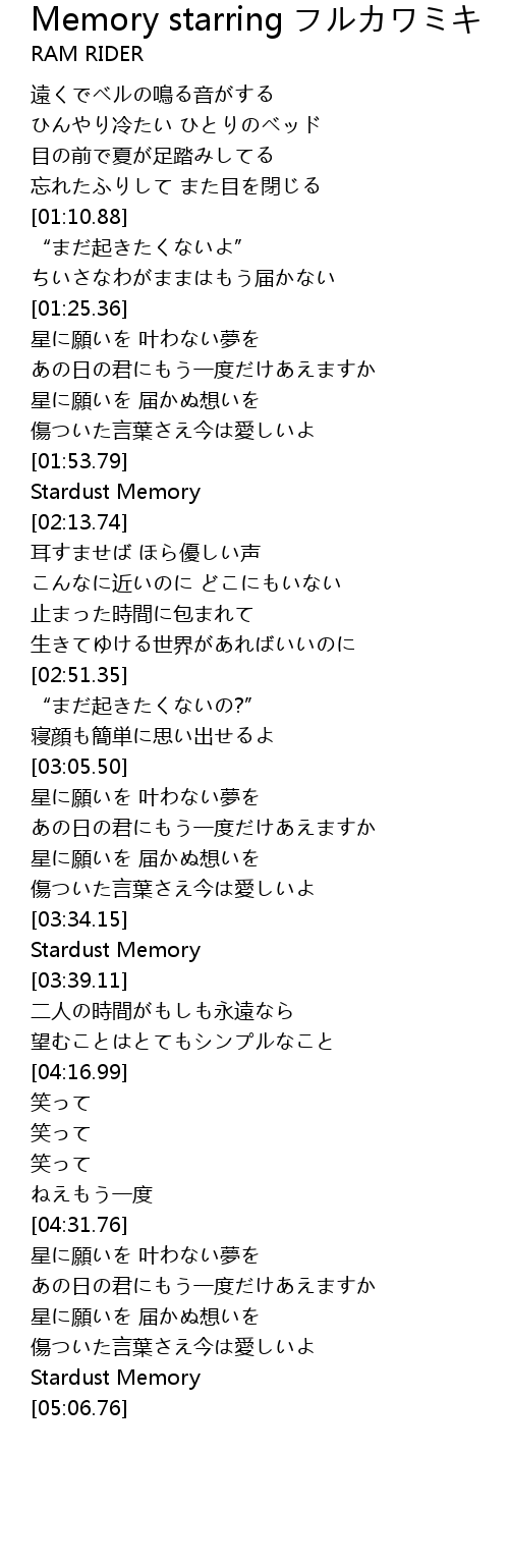 | [01:39.54] | 星に願いを 届かぬ想いを |