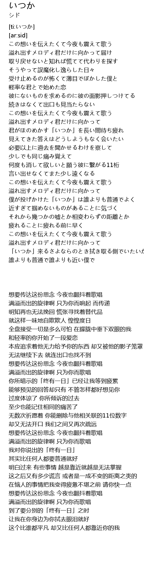| [03:04.535] | 僕が投げかけた「いつか」は誰よりも普通でよく |