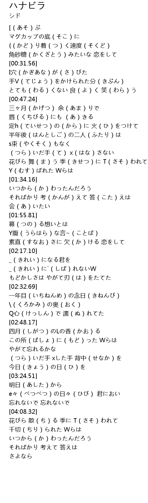 | [04:09.92] | 花びら 散(ち)る 季に T(さそ)われて |