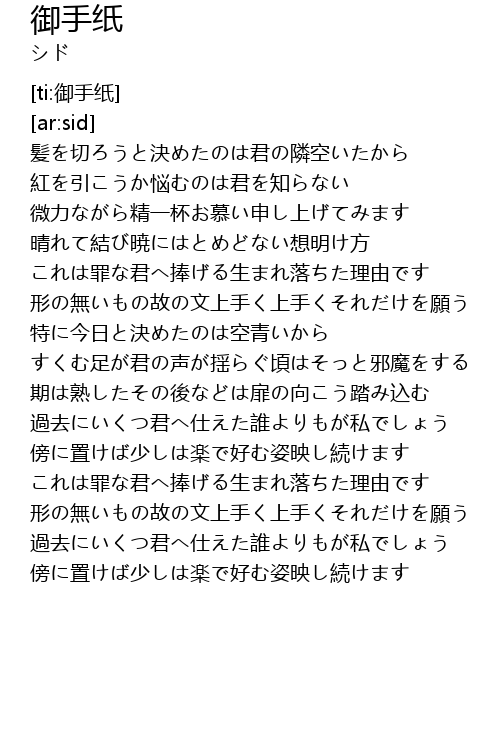 | [01:04.98] | これは罪な君へ捧げる生まれ落ちた理由です |