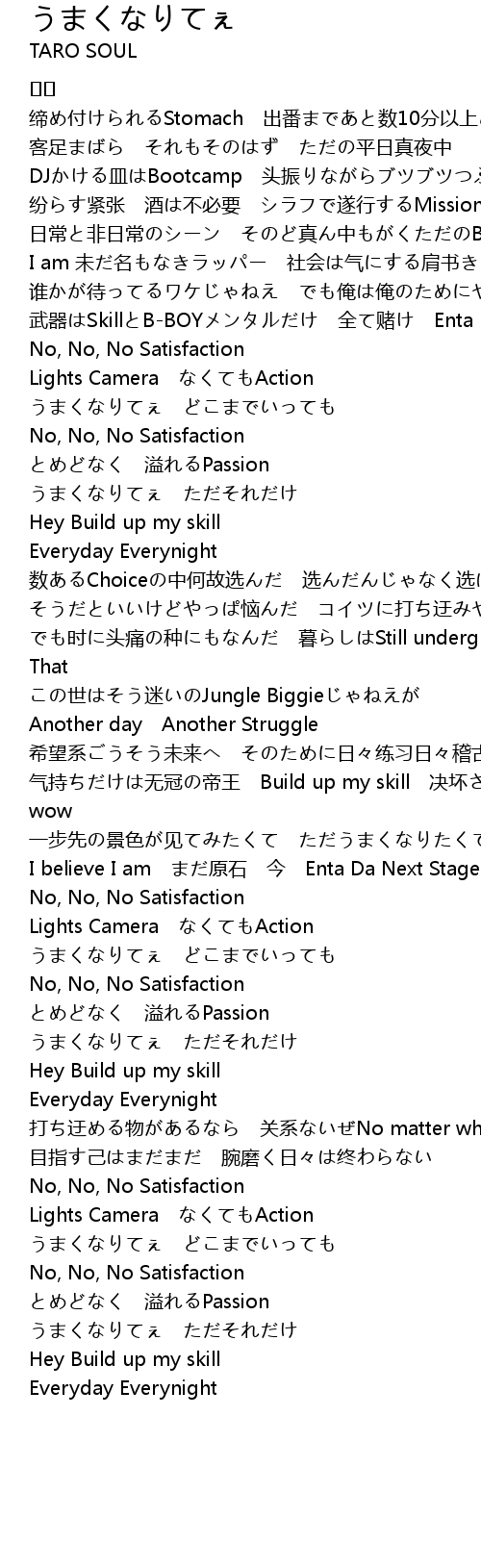| Song | うまくなりてぇ |