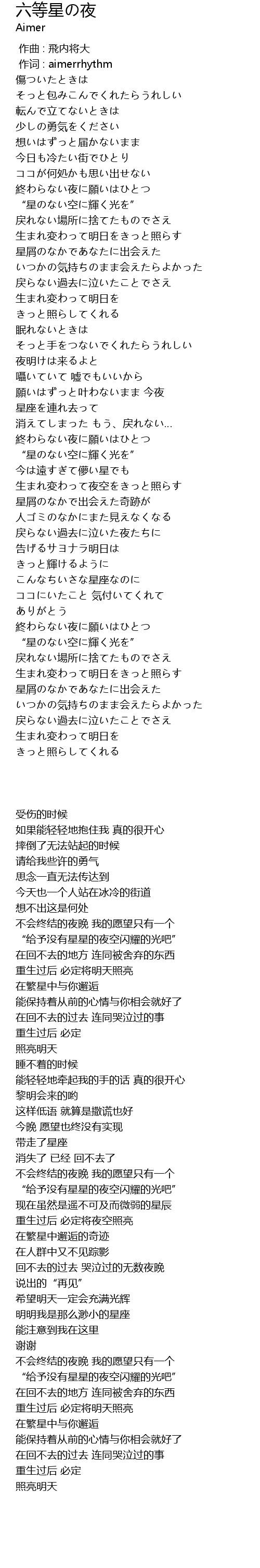 | [03:13.930] | 生まれ変わって夜空をきっと照らす |