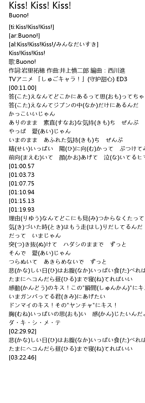 | [00:01.00] | Kiss! Kiss! Kiss! |