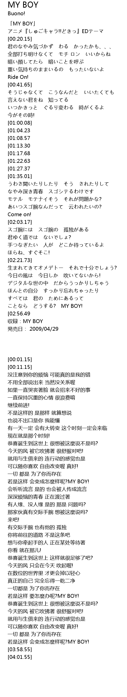 | [03:58.55] | 収録:MY BOY |