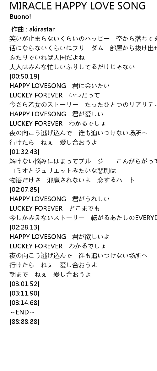 | [01:08.83] | HAPPY LOVESONG 君が爱しい |