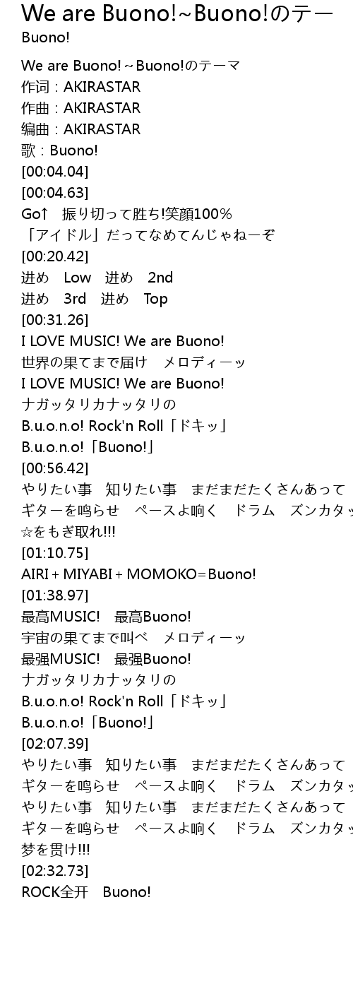| [00:00.00] | We are Buono!~Buono!のテーマ |