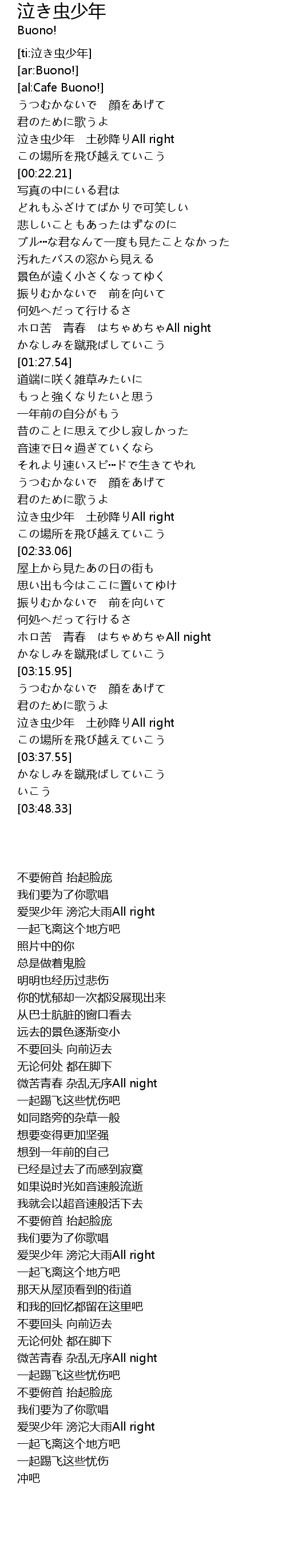 | [02:23.45] | 泣き虫少年 土砂降りAll right |
