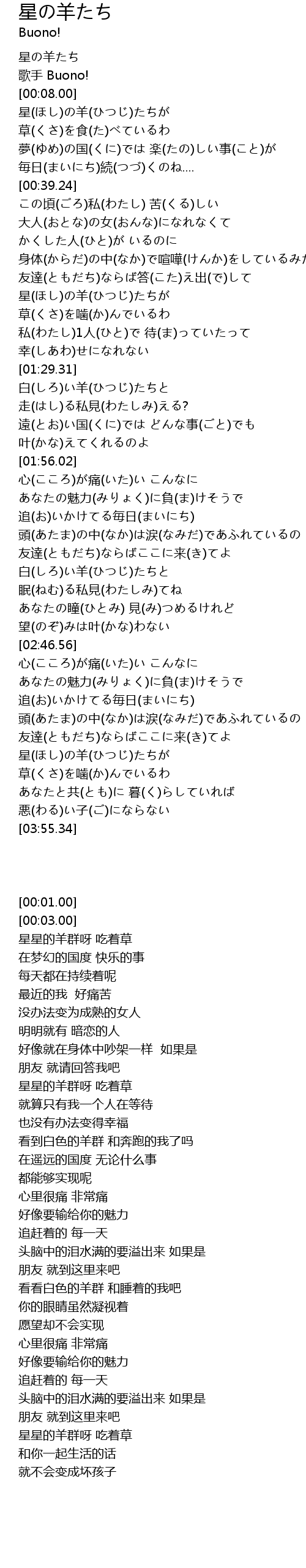 | [03:35.77] | 星(ほし)の羊(ひつじ)たちが 草(くさ)を噛(か)んでいるわ |