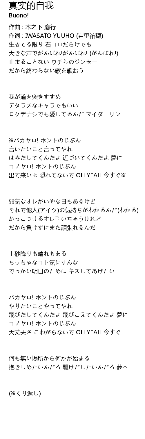 | 作词 : IWASATO YUUHO (岩里祐穗) | |