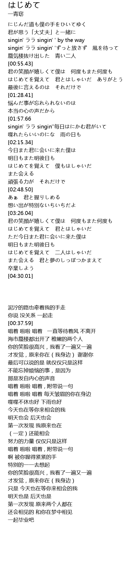 | [01:08.03] | はじめてを覚えて 君とはしゃいだ ありがとう |