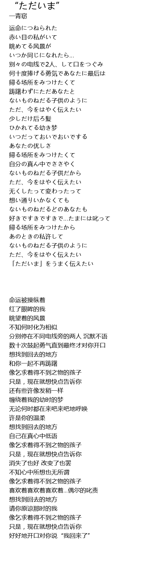 | [03:25.130] | 帰る场所をみつけたから |
