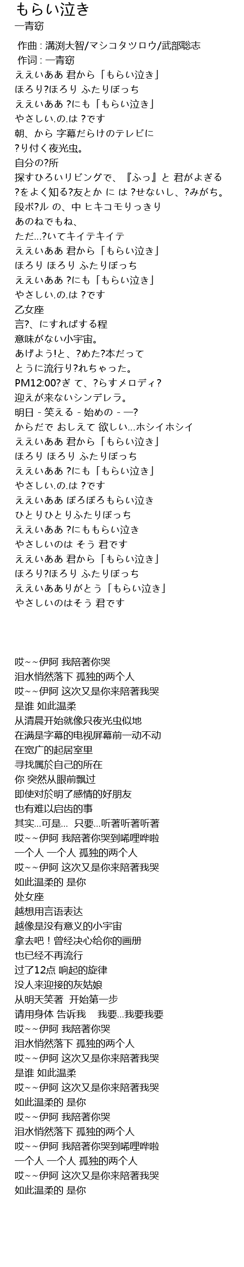 | [02:45.040] | ええいああ 君から「もらい泣き」 |