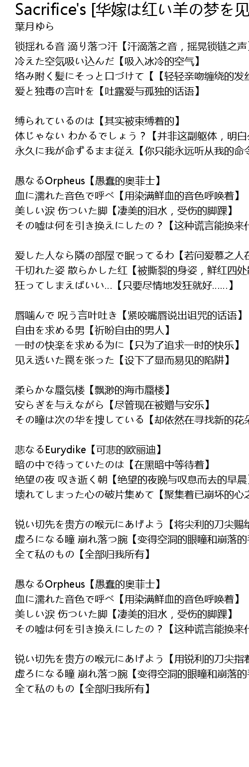 | Song | Sacrifice's [华嫁は红い羊の梦を见る] |