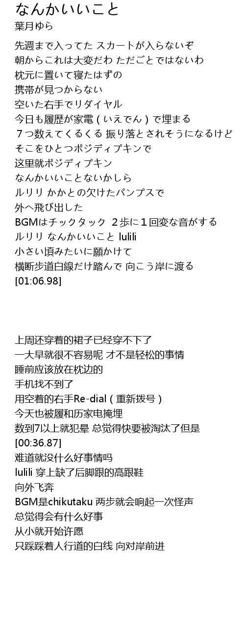 | [00:56.02] | ルリリ なんかいいこと lulili |