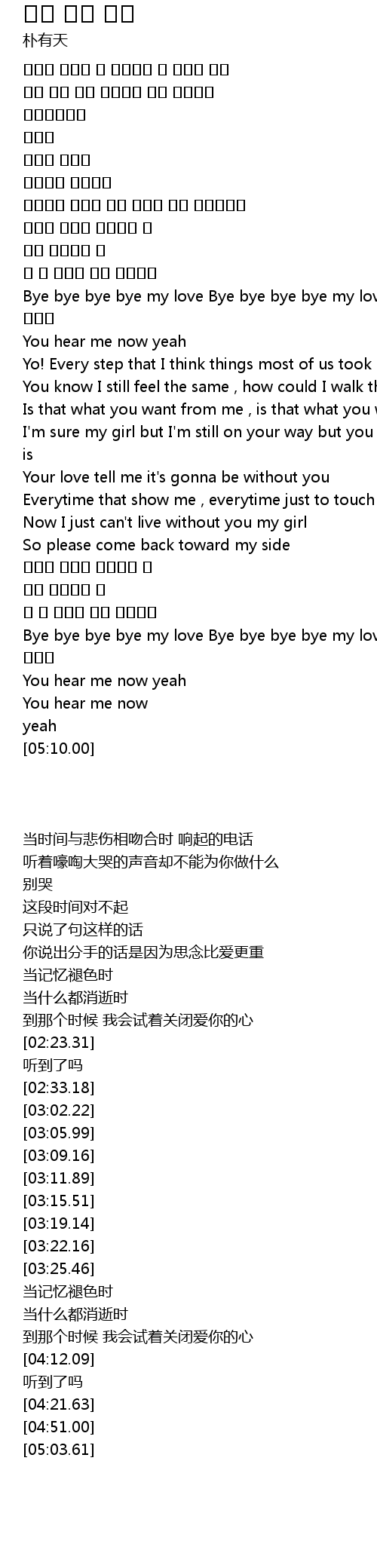 | [02:23.31] | Bye bye bye bye my love Bye bye bye bye my love |