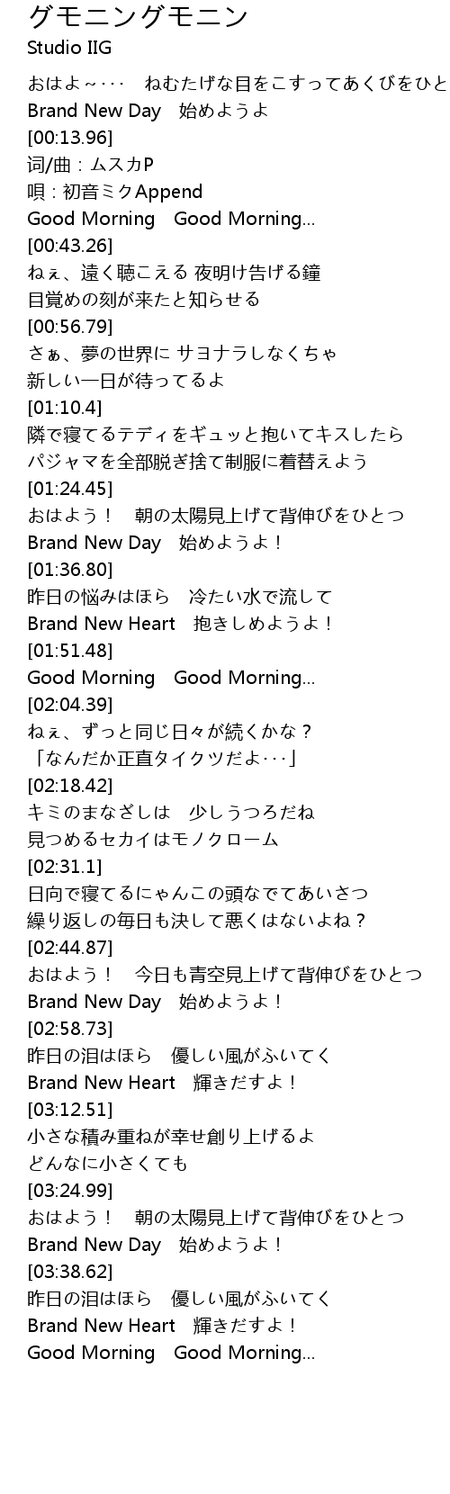 | [03:53.76] | Good Morning Good Morning... |