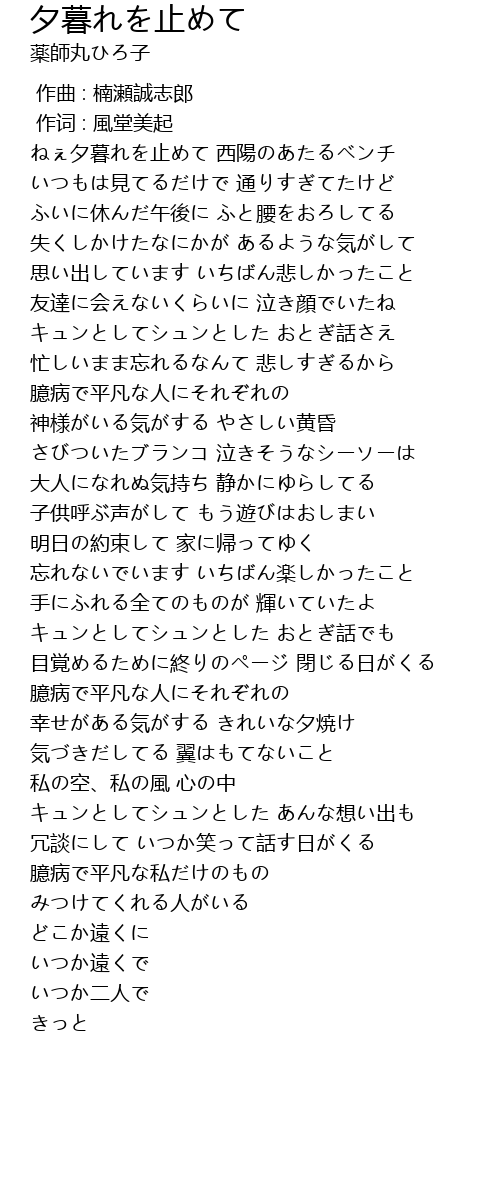 | Song | 夕暮れを止めて |