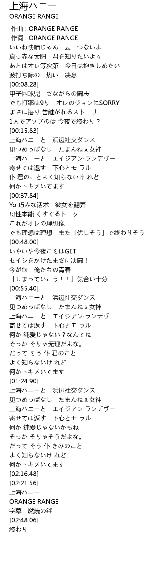 | [01:47.74] | 上海ハニーと 浜辺社交ダンス |