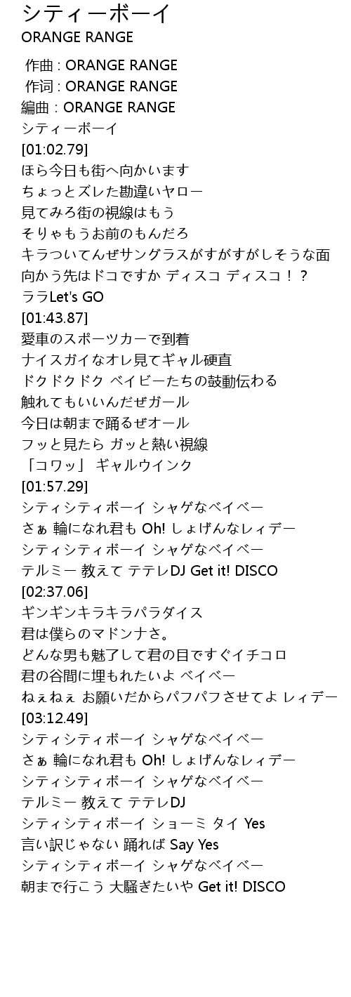 | [00:01.00] | 作词 : ORANGE RANGE |